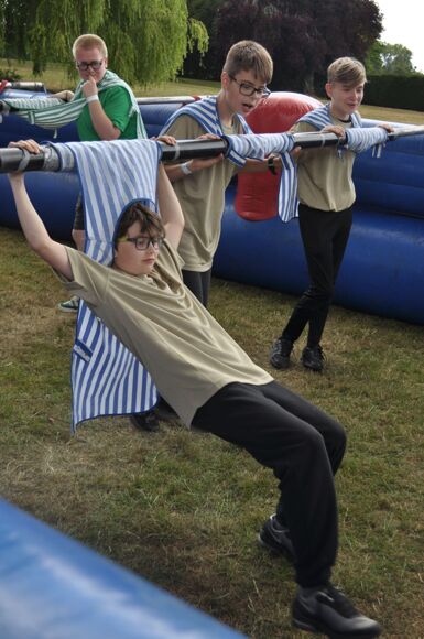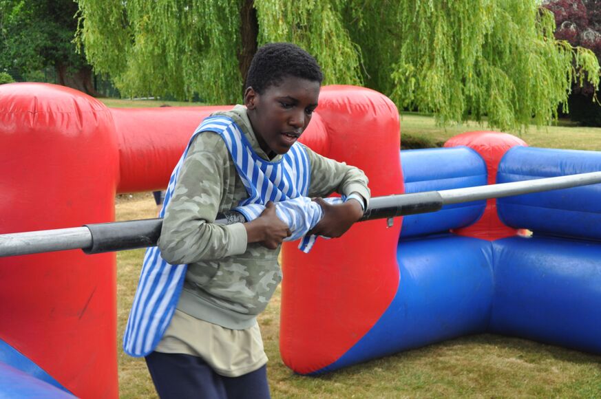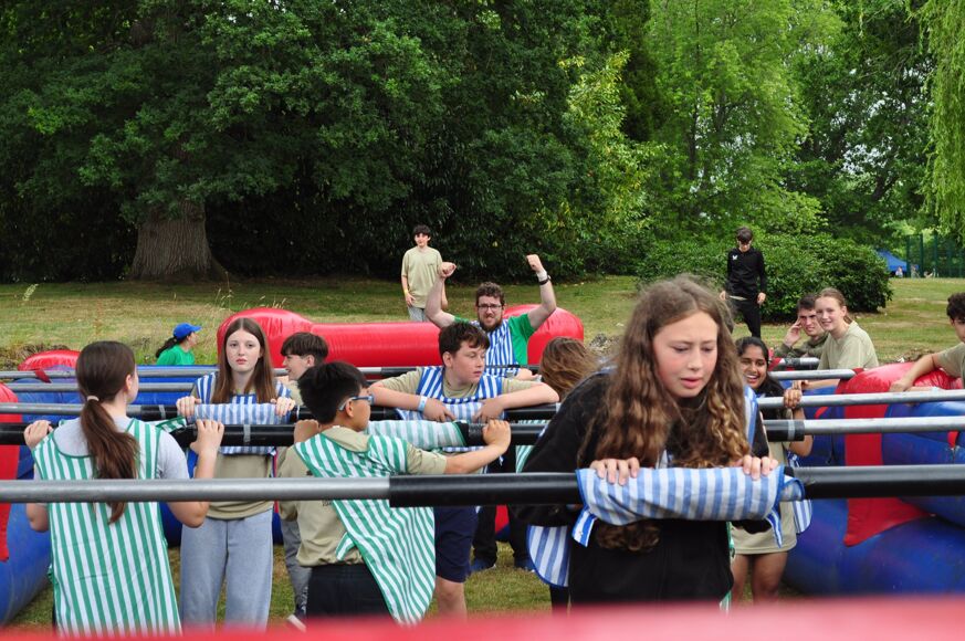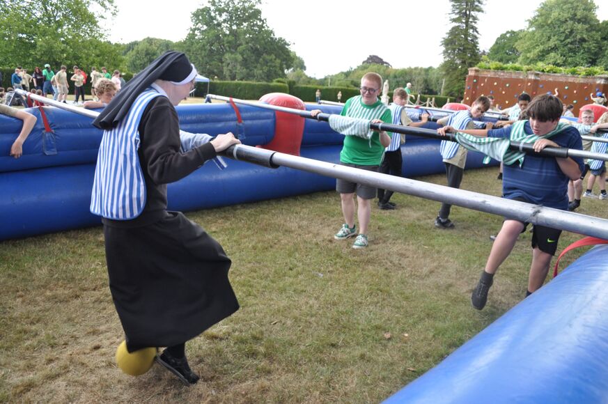 Our camp began with a BBQ, some games to get the 150+ young people acquainted with one another and a roaring campfire late in the evening. There were schools representing the length and breadth of the UK including De La Salle Jersey who made the long trip over on the ferry. Saturday was filled with a jam-packed carousel of activities to keep everyone brimming with joy. New friendships blossomed, new skills learnt, memories created and some unique sights witnessed – namely Sr Mary John, Chaplain from Cardinal Langley, getting stuck in on the inflatable table football and climbing wall in full habit. For our students it was a great blessing for them to see and hear a woman so young fulfilling her vocation as a religious sister.