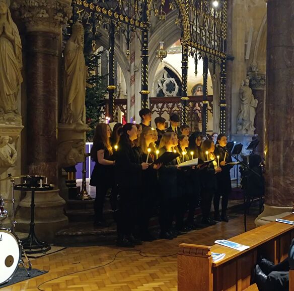 On three occasions this week we have been blessed to witness the incredible talents of our students and staff leading us in music and scripture to prepare us for Christmas. The first, our annual joint Carol Service with St John’s Primary School, took place on Tuesday night at St John the Evangelist RC Church in Bath city centre, with a packed congregation led beautifully by nearly 200 students. Our theme was taken from the upcoming Jubilee year, ‘Pilgrims of Hope’, journeying through both Old and New Testament Scripture to unravel the story of God’s relationship with humanity culminating with the first Christmas. Woven in between the Biblical passages were performances of music from St Gregory’s and St John’s choirs, ranging from solemn to joyous, both classical and contemporary, as we heard of the way God’s people have been treated throughout history.